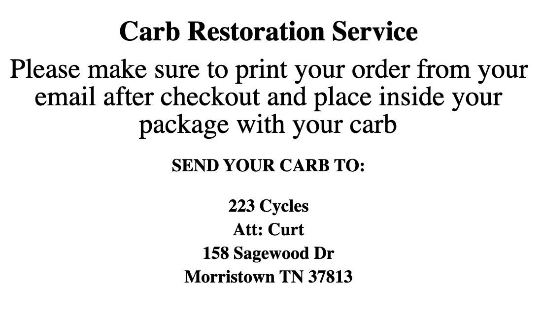 I highly recommend 223 cycles for cleaning oem carbs. I wouldn't get cheap china ones. let the professionals do it and if I had a question they responded very quickly. I will use them again on a few other trikes I'm restoring. I'm very pleased at the work y'all did and I look forward to future business with 223 cycles. thanks for all your hard work. AWESOME JOB GUYS